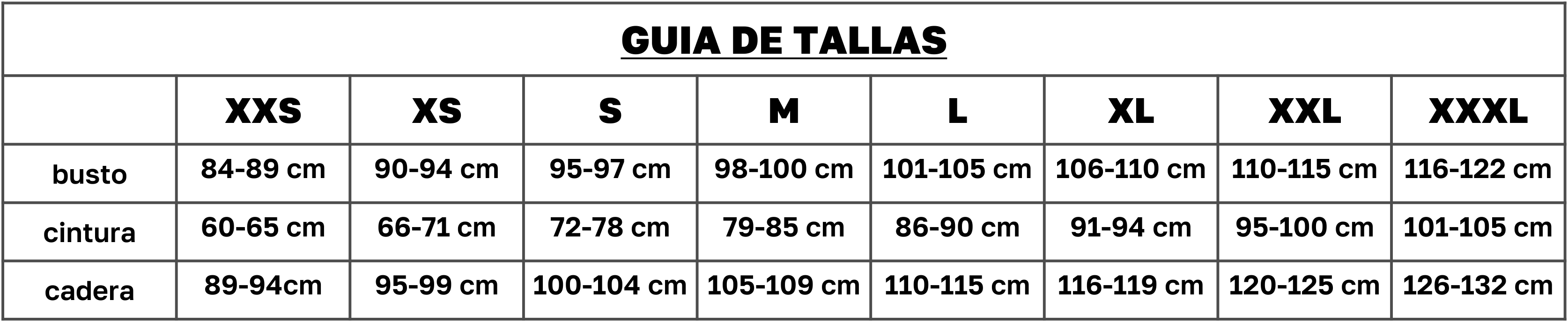 Nuestras prendas están pensadas para acompañar el movimiento de tu cuerpo, no para imponerte una forma. Por eso diseñamos cada pieza para que se adapte a ti, y no al revés. La siguiente tabla funciona como una referencia basada en medidas corporales estandarizadas con las que trabajamos. Tomar tus propias medidas de manera precisa te permitirá elegir la talla que ofrezca el mejor ajuste y mayor comodidad.